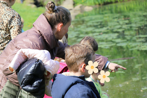 Cette activité en plein air et sous le soleil d'avril permet aux enfants de l'Accueil de Loisirs d'essayer leur paire de jumelles, confectionnées plus tôt dans la semaine (article sur la confection de jumelles à retrouver ici). Nos petits créateurs mutent désormais en explorateurs, à la recherche des grenouilles peuplant la marre de Saint-Martin-des-Champs. Pari réussi : ces petits amphibiens leurs coassements sont au rendez-vous !